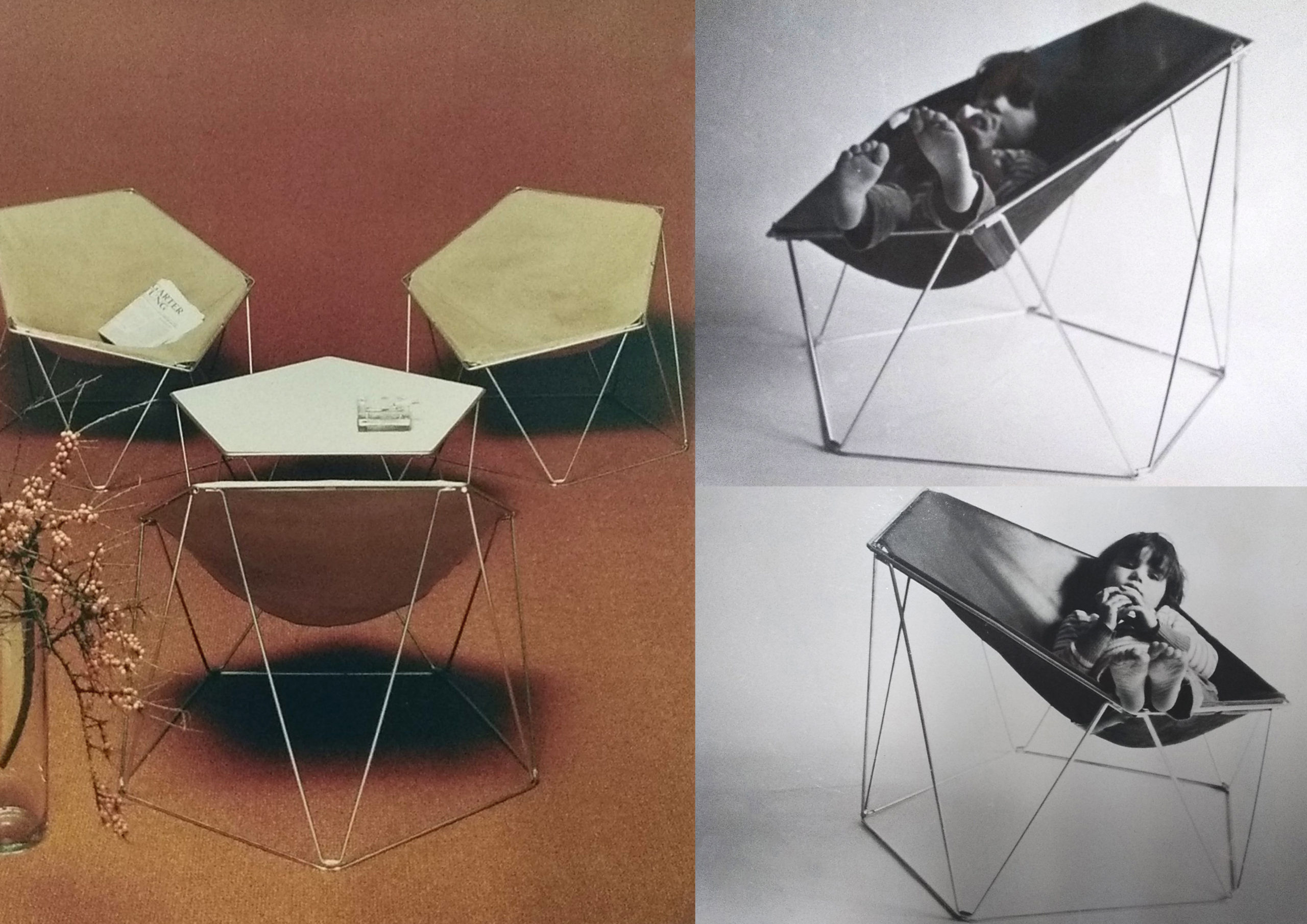 1970. À l’origine du projet de Jean-Paul Barray et Kim Moltzer, un pari : faire entrer dans le coffre d’une 2 CV Citroën quatre fauteuils et une table pour un pique-nique en plein air. Démontable et pliable, la gamme Penta se veut donc nomade, mais s’adapte aussi aux petits espaces intérieurs. Compact, esthétique et confortable, Penta est ainsi capable de passer du salon au jardin.